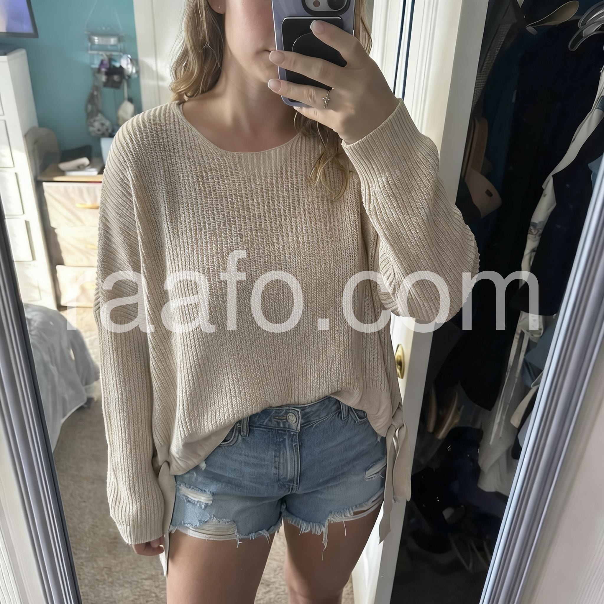 I’m really impressed by how comfortable this sweater is. It has a relaxed silhouette that doesn’t cling, and the knit fabric is soft to the touch. The styling is also very easy—I can wear it with jeans, skirts, or shorts. It’s become my go to for weekends and casual outings.