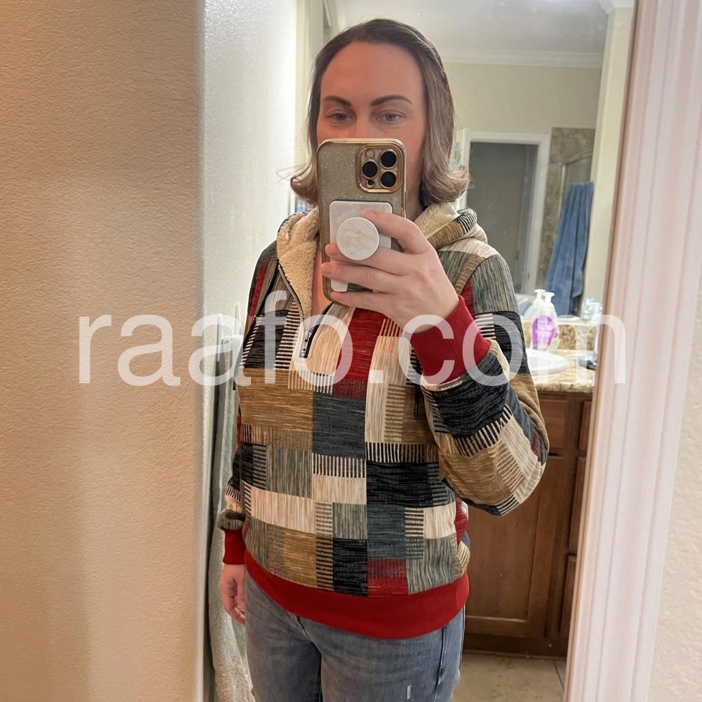 I bought this zip-up top for a casual weekend look, and it exceeded my expectations. The patchwork-style design is unique and modern, and the colors are well-balanced rather than overwhelming. The collar adds that cozy touch, and the overall construction feels solid. It’s easy to pair with jeans or leggings, and it looks great in every lighting situation.