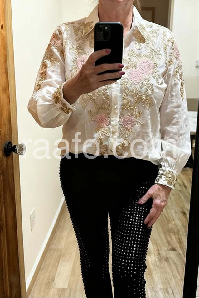 Absolutely love this blouse! The embroidery is gorgeous, and the fabric feels so soft and luxurious.The order was processed super fast and received in perfect condition. True to size, both attractive and comfortable.