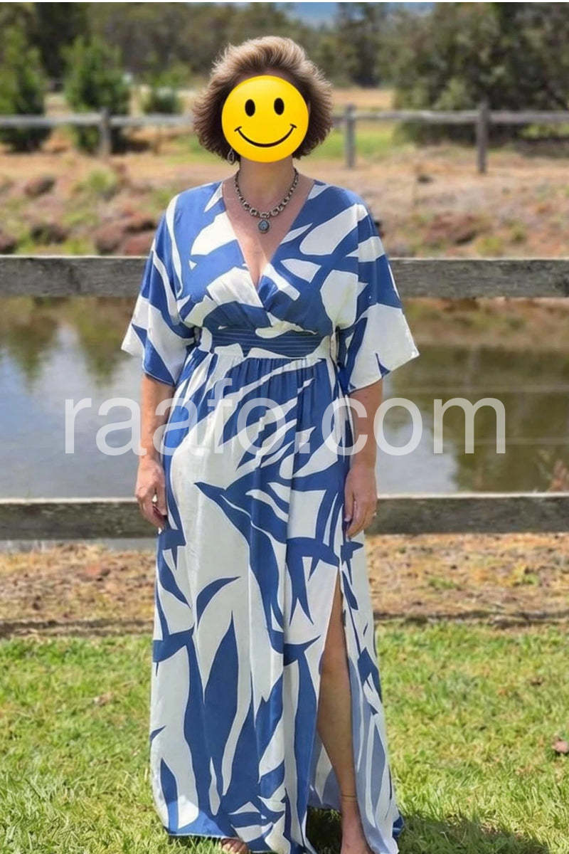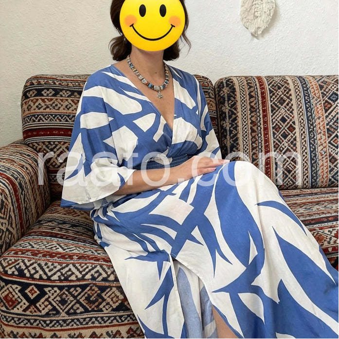 This maxi dress is absolutely gorgeous! 😍 The fabric is so soft and flowy, making it super comfortable to wear. It fits perfectly, cinching at the waist to give a lovely silhouette. I feel amazing in it, and the blue and white pattern is stunning! Highly recommend! ✨👗