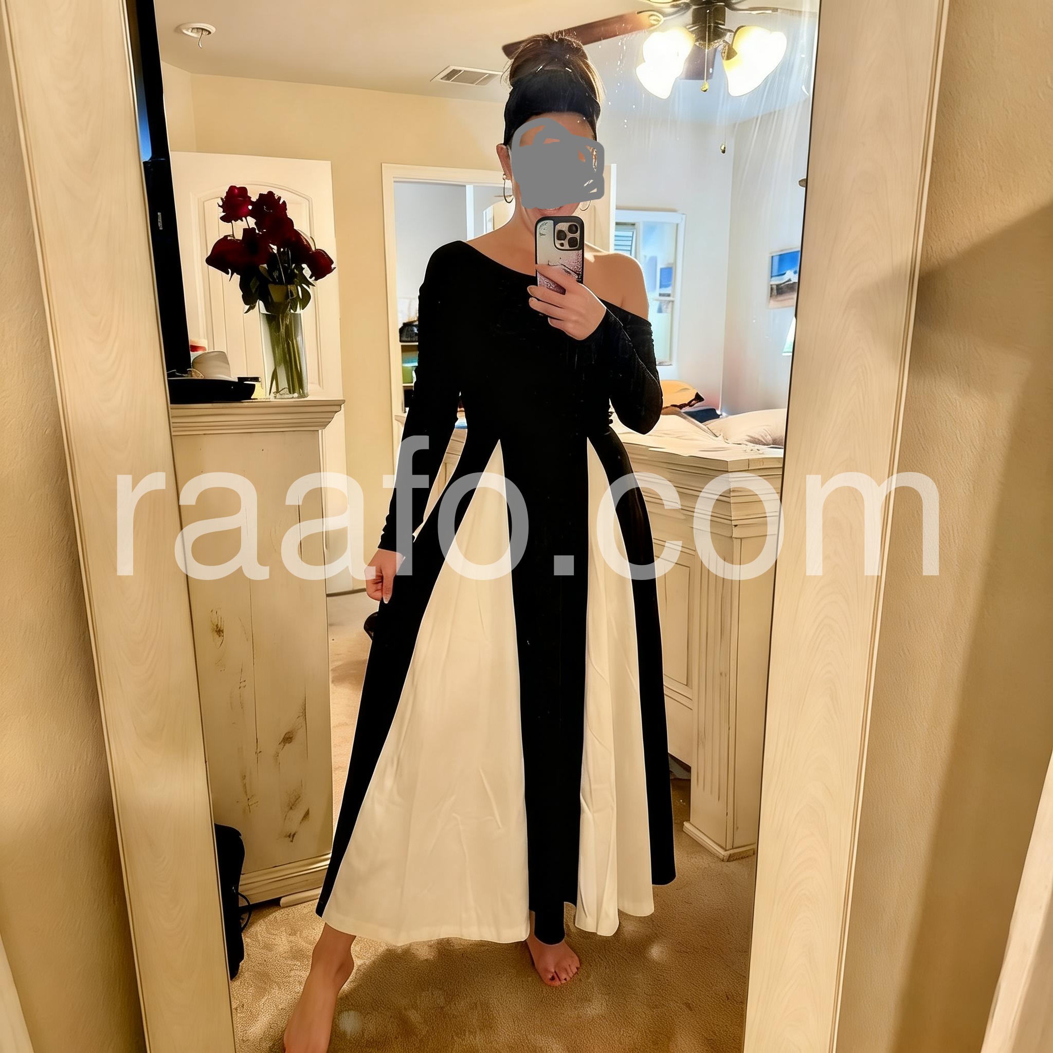 Black And White Color Block Maxi Dress