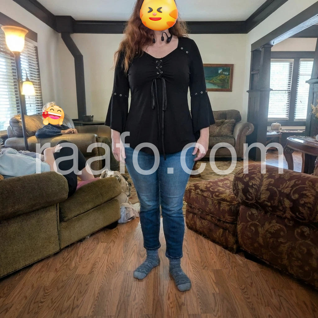 This top is exactly what I needed for a night out! The V-neckline is flattering, and the lace-up ribbon makes it look so elegant. The bell sleeves are flowy and don’t restrict movement at all. The fit is true to size, and the asymmetrical hem adds a stylish touch. I will definitely be wearing this on repeat!