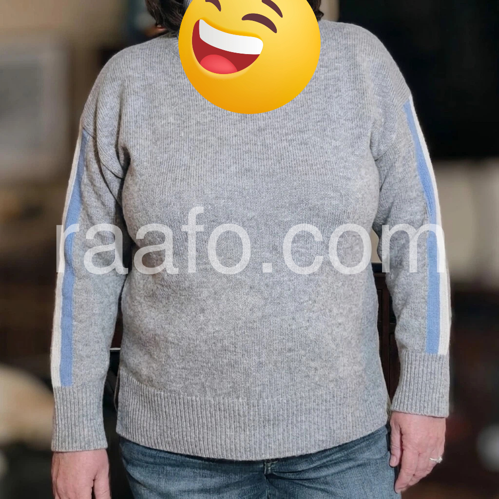 When I first received this grey sweater I wasn't sure if I liked it. One I tried it on I did like it. It fits well and I liked the design of the sweater. I like the high-neck, which isn't too cold. The sweater is comfortable and lightweight for cool days. I think it is a good value for the price.