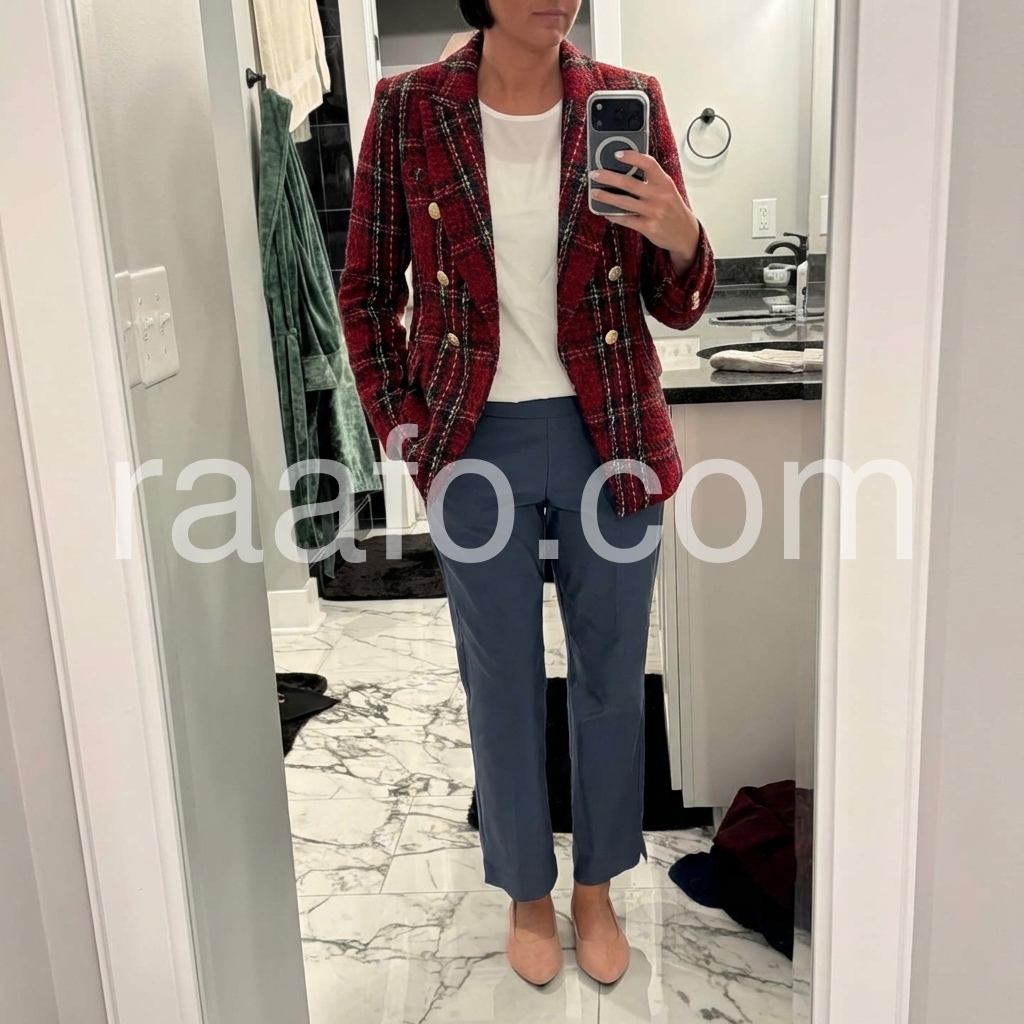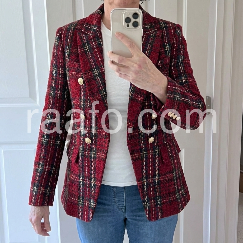 I bought this for a seasonal wardrobe refresh, and it turned out to be a great choice. The burgundy color is stunning, and the plaid design adds a cozy, artsy feel. It’s warm, flattering, and effortlessly stylish.
