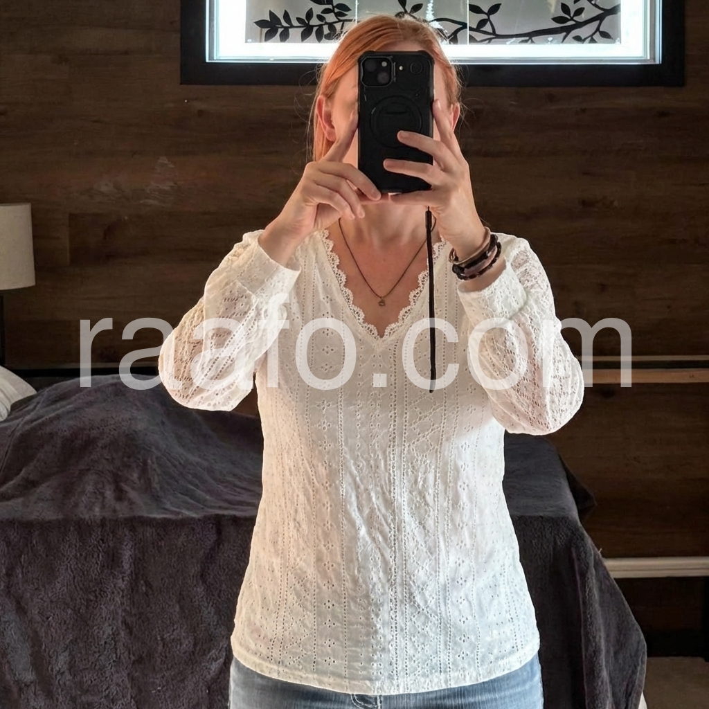 Insanely obsessed with this top. I’m not joking. I got a size large and it is the perfect fit. It is gorgeous flattering comfortable. For reference I am 5 foot six. I am a size 10 or a size 12 I weigh 164 pounds between a medium or large top.