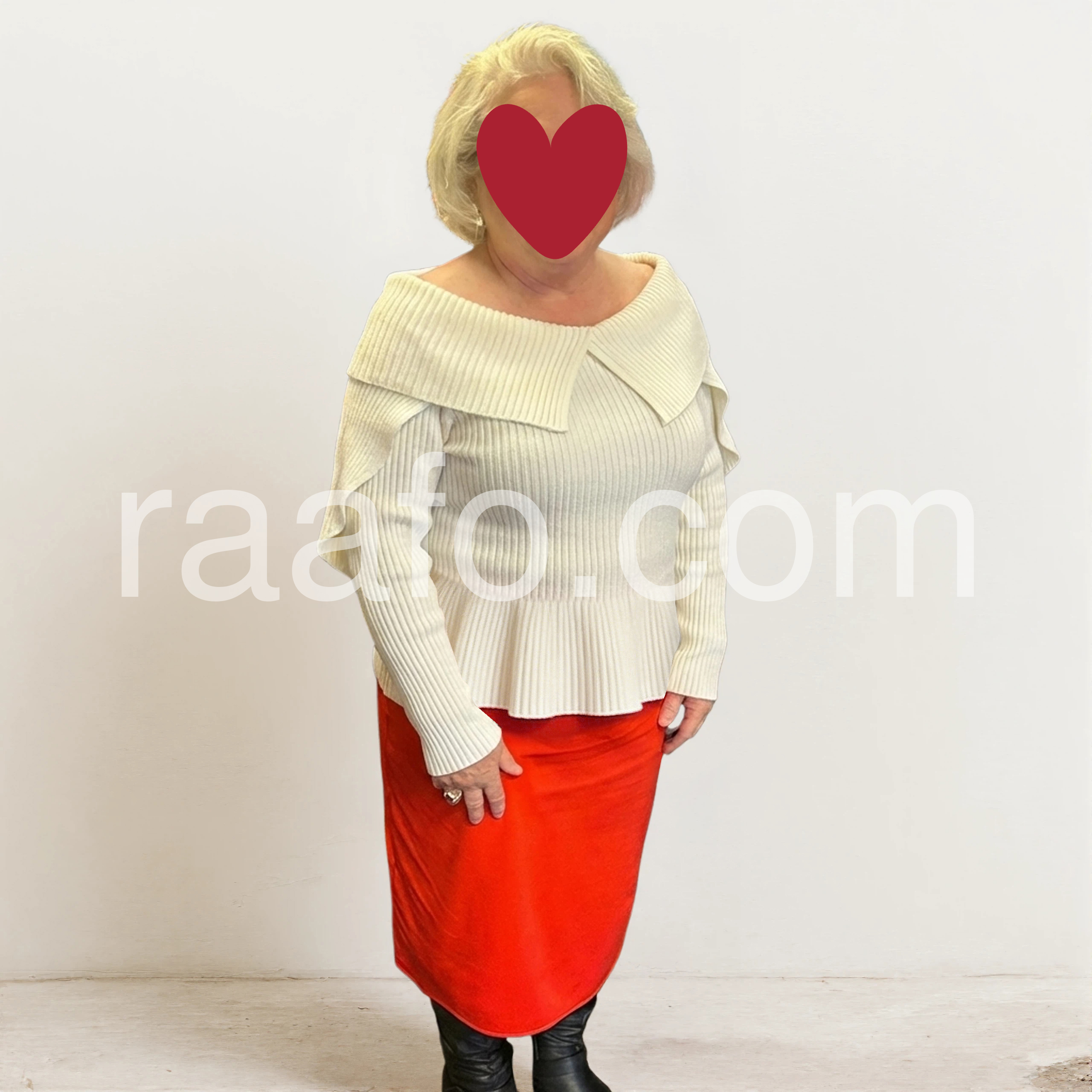 Pretty soft comfortable to wear true as the picture. Nice fit not tight true to size. Lightweight to med weight. Very flattering.