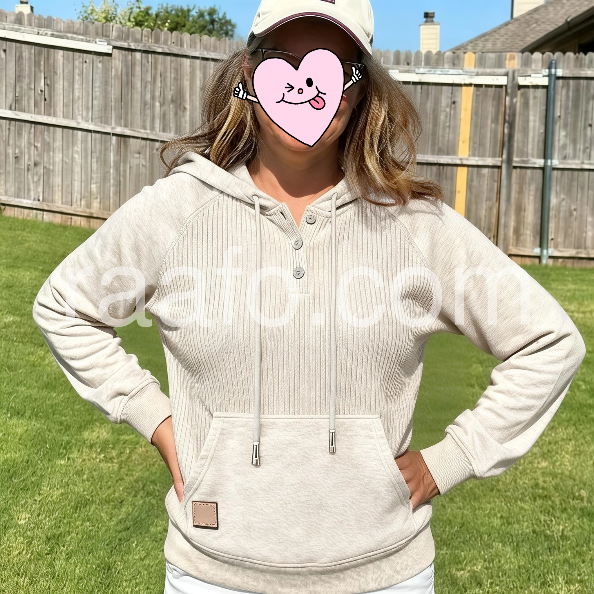 Comfy Plain Ribbed Knit Hoodie Button Front Sweatshirt