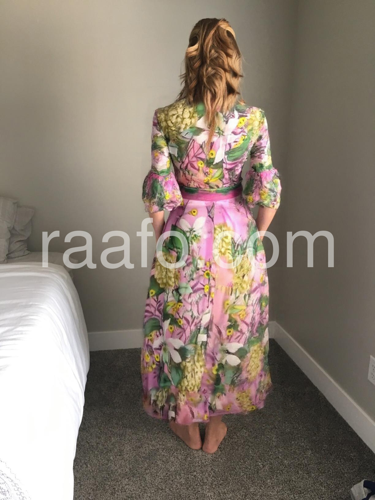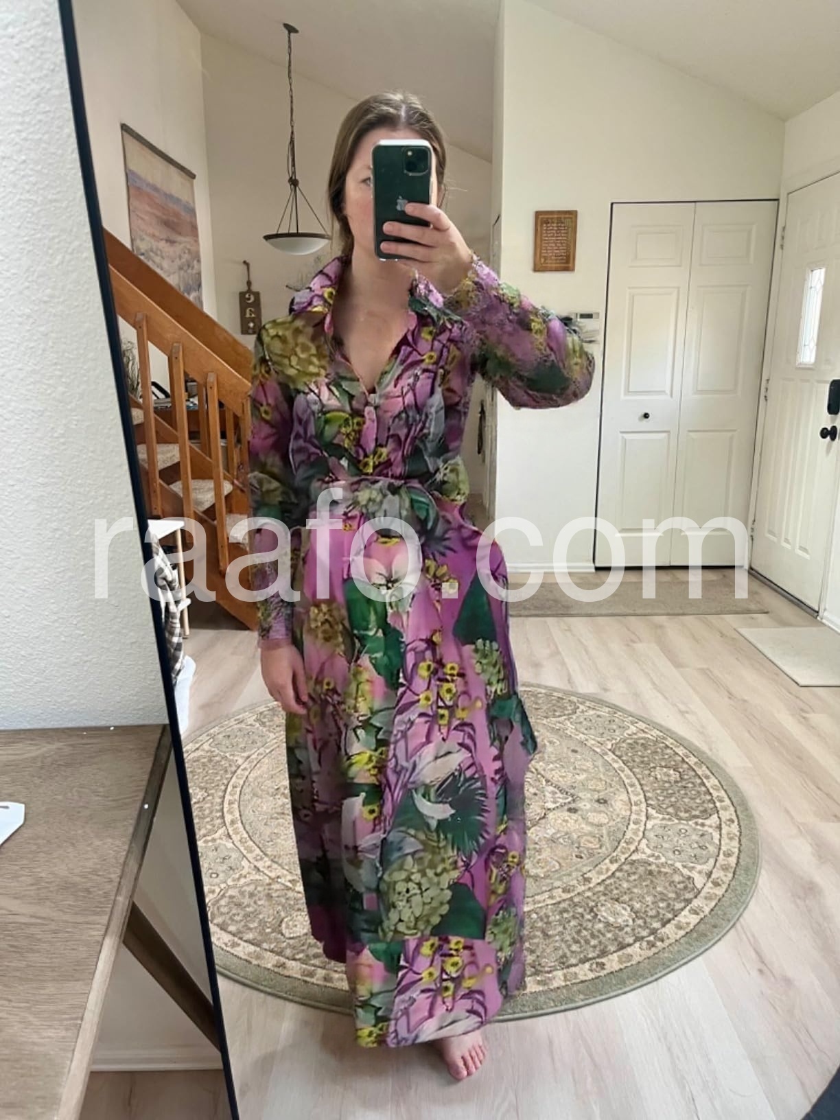 I love the vibrant colors and intricate floral pattern of this dress! It's perfect for a spring day out.
