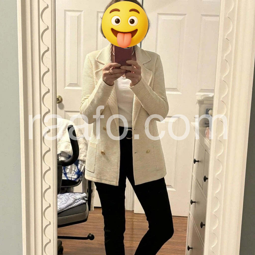 Very impressed with the quality of this sweater. It feels heavy and well-made, not flimsy at all. The double-breasted design is super trendy right now.