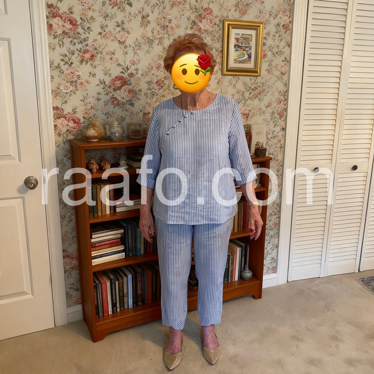 A wonderful outfit that is both modest and stylish. The sleeves cover my upper arms perfectly, and the cropped pants hit right at the ankle. Very classy and comfortable.