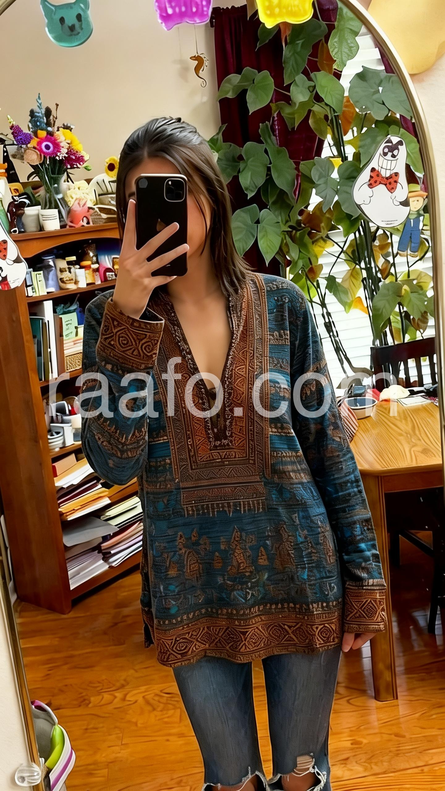 This is such a nice boho tunic. The fabric feels soft and the print is vibrant and well done. The V-neck design is flattering, and the fit is comfortable through the shoulders and sleeves. I wore it out and it looked great all day. Matches the listing pictures perfectly highly recommend!